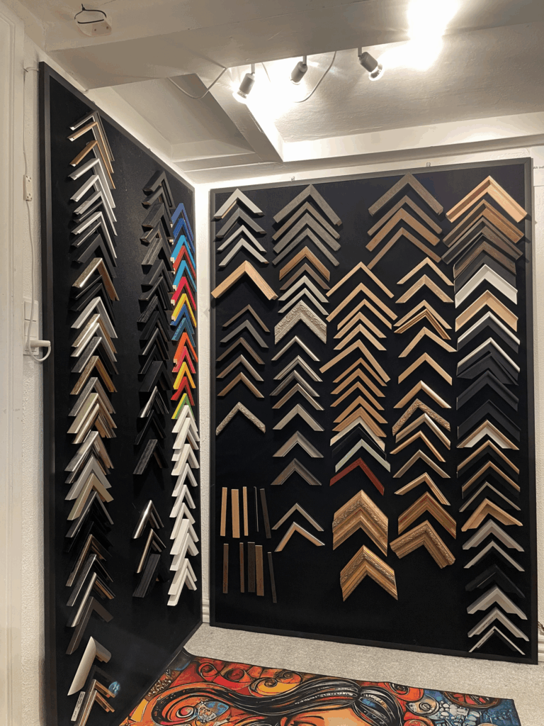 Siden da har vi flyttet værkstedet til Tyge Brahes Vej 46 i kælderen, hvor vi fortsat driver vores professionelle rammeværksted. Her udfører vi alt fra standardindramninger til specialopgaver med lærred, malerier, laminering og opklæbning – alt sammen med faglig stolthed og præcision.